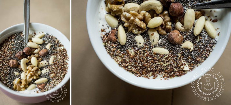 _als Topping: Gemischte Nüsse, Chia- und Leinsamen