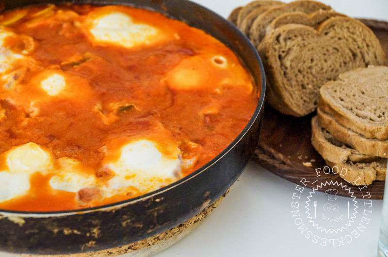 Die Grundlage für das Rezept sind die Tomaten und alles weitere für die Sauce, in die dann später die Eier geschlagen werden. Das Gemüse kann beliebig ergänzt und auch gerne als Resteessen verwendet werden. Alles in die Pfanne was weg muss ist hier die Devise ;-) Wer möchte, kann auch noch kleine (scharfe) Würstchen dazutun. Probiert es einfach aus, mir hat es sehr gut geschmeckt! Außerdem ist es gesund: Tomaten als Grundlage, Gemüse und Eier. Somit hat man wenig Kohlenhydrate und viel Eiweiß. In dem Sinne, viel Spaß beim Ausprobieren und bei dem kleinen Exkurs in die israelische Küche!