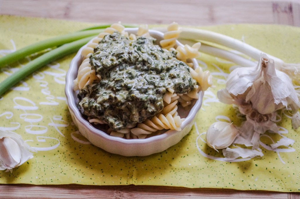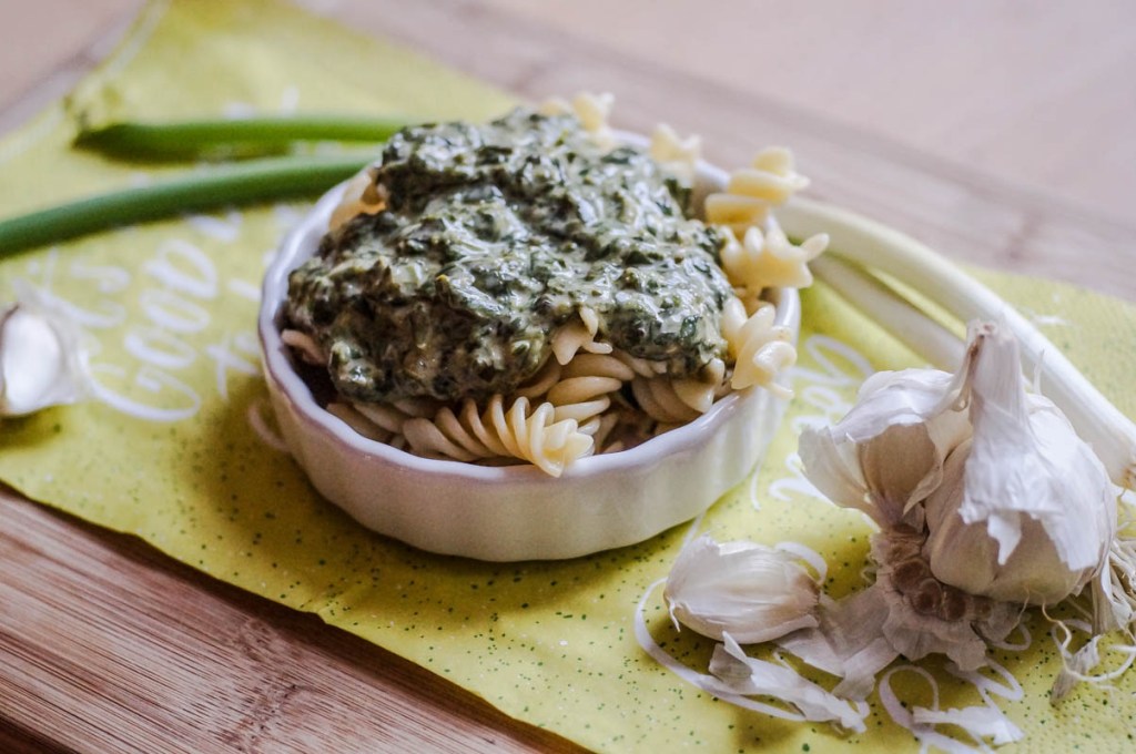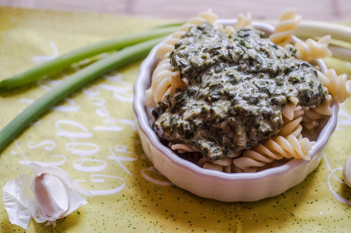 Der Rahmspinat macht die Sauce wunderbar cremig. Wobei man es eigentlich gar nicht Sauce nennen kann, da der Hauptbestandteil der Spinat ist und man ihn ähnlich wie Pesto oder eben eine Sauce einfach über die Nudeln geben kann. Schonmal ausprobiert? Auf jeden Fall sehr empfehlenswert, deswegen hier nun das einfache und dafür umso schmackhafteres Gericht!