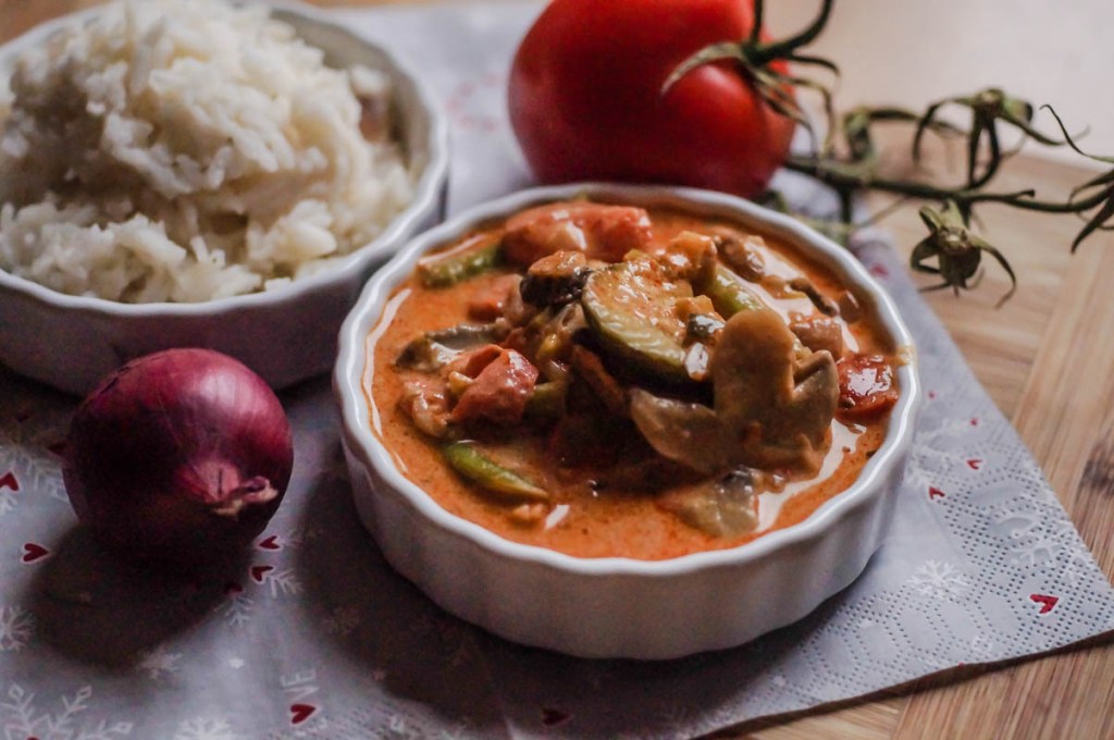 Das neue Jahr startet hier auf dem Blog direkt mit einer Portion Fernweh. Zwar erhebt dieses Rezept keinen Anspruch auf die originale Thai-Zubereitung, jedoch erinnert es mich einfach sehr an meine Thailandreisen und die leckeren Currys vor Ort. Aus dem Grund möchte ich es euch heute als Inspiration an wärmere Tage und weite Fernreisen liefern. Egal ob man im Norden Thailands die wundervolle Natur entdeckt oder im Süden an einem Strand der zahlreichen Inseln die Seele baumeln lässt. Dieses Curry schmeckt genau nach diesen Erinnerungen und versetzt einen nach Thailand zurück oder lässt einen davon träumen, wenn es noch auf der Liste der möglichen Reiseziele steht.