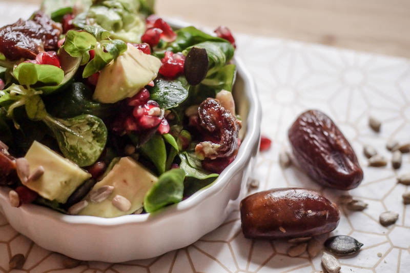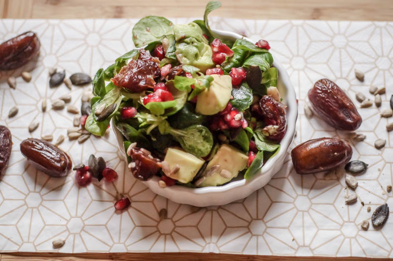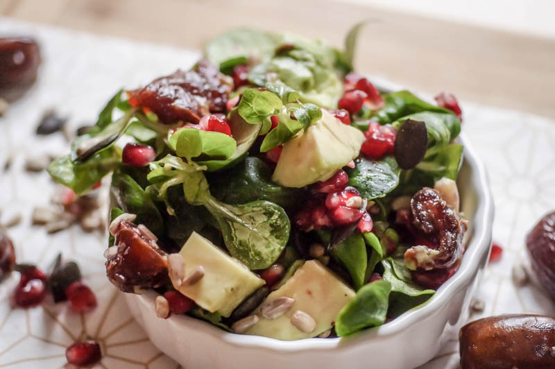 _FELDSALAT MIT DATTELN UND GRANATAPFELKERNEN (vegan)