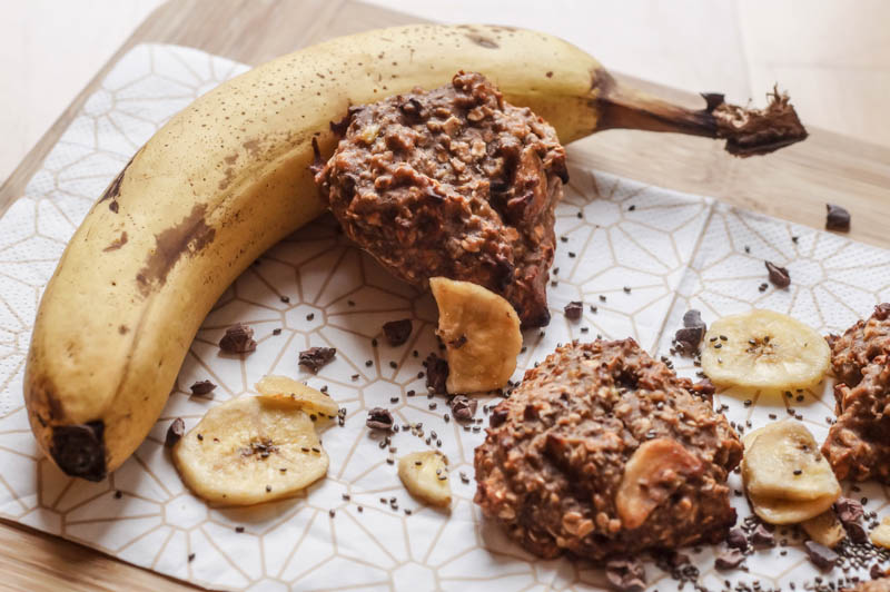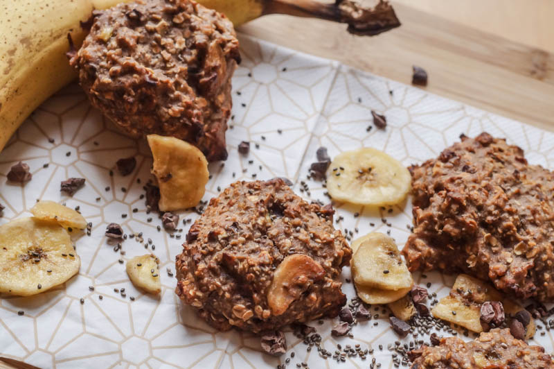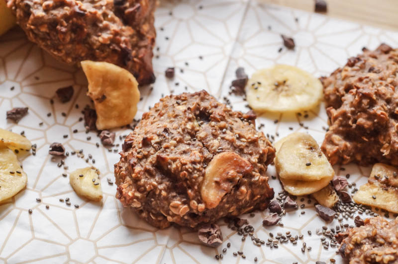 Als es am Wochenende ständig zwischen Regen, Sonne und Wind hin und her gewechselt hat, hatte ich den spontanen Einfall nochmal Kekse zu backen. Schließlich sind Kekse immer eine gute Idee und sie muntern einen bei jeder Wetterlage wieder auf. Man kann sie nämlich einfach immer genießen – egal ob eingekuschelt in einer Decke und mit Tee auf der Couch oder bei strahlendem Sonnenschein im Garten bei einem erfrischenden Getränk. Man kann die Kekse natürlich beliebig abwandeln und den Geschmack anpassen, wenn man zum Beispiel mehr Früchte oder Schokolade verwenden möchte. Ich habe hierbei vor allem Bananenchips, Chiasamen und Kakaonibs genutzt.