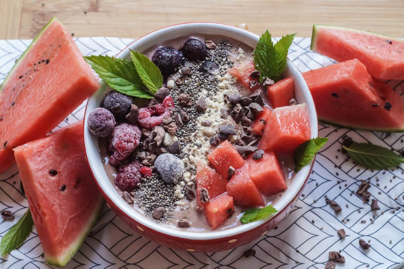 Als erstes zeige ich euch eine erfrischende Wassermelonen-Bowl, die man gut als Frühstück essen kann als auch als fruchtigen Snack zwischendurch!