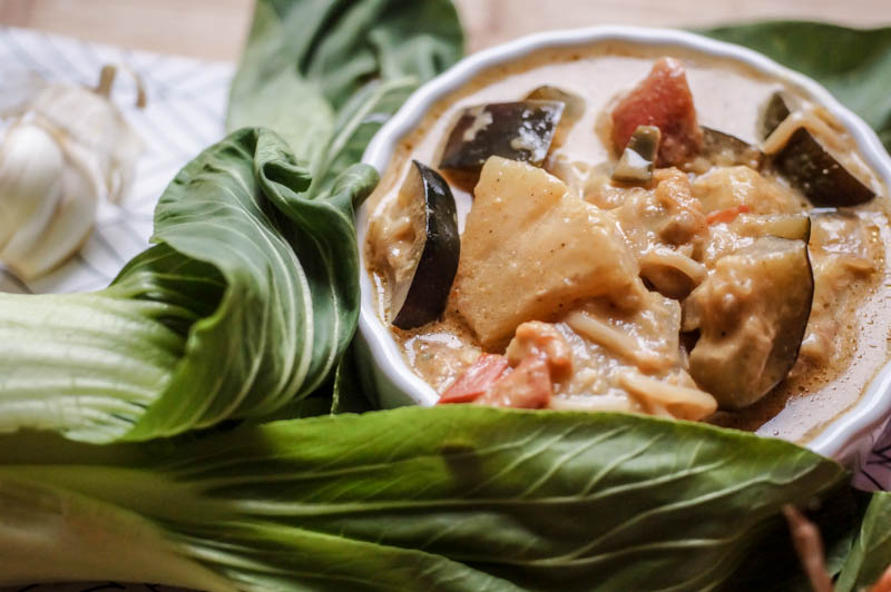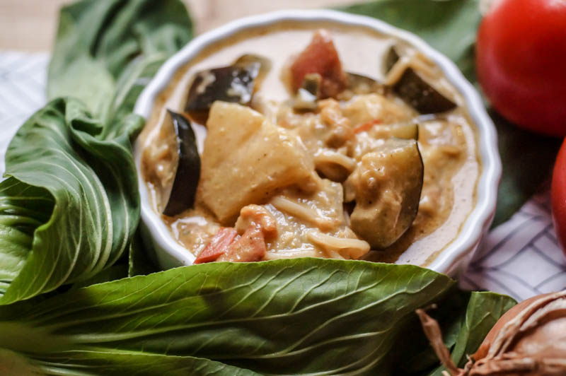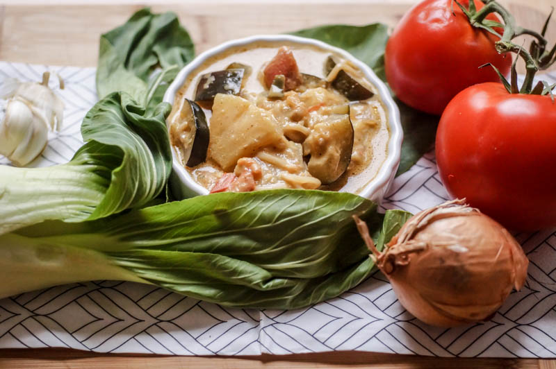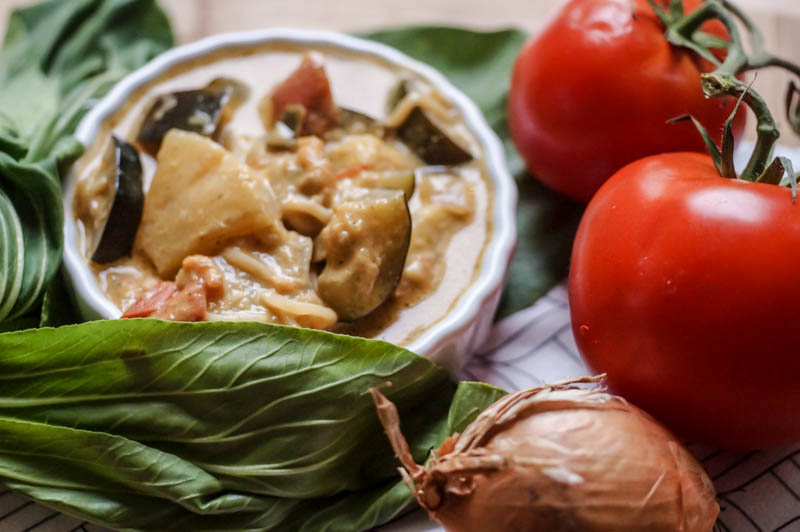 Und damit ihr euch auch entweder erinnern oder von zukünftigen Reisen träumen könnt, habe ich hier das Rezept für euch. Es besteht hauptsächlich aus viel Gemüse, das verarbeitet wurde und Kokosnussmilch. Ein paar Gewürze dazu und wahlweise Reis oder Nudeln und schon ist es fertig. Ich habe hierbei Mie-Nudeln verwendet, die mit ins Curry gemischt worden sind und deswegen im Curry verschwinden. Ihr könnt natürlich je nach Geschmack auch andere Nudeln oder Reis verwenden, je nachdem was euch lieber ist. Und nun wünsche ich euch einen guten Appetit!