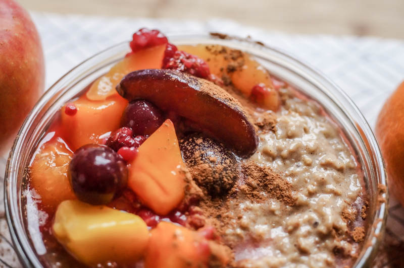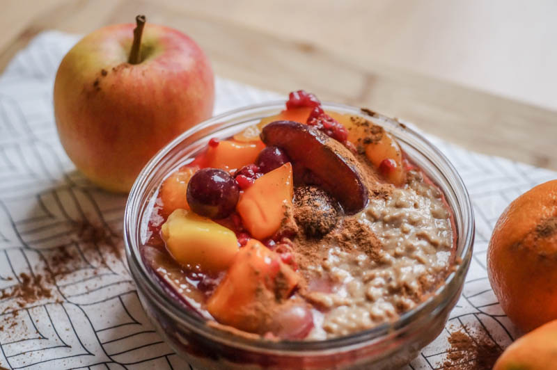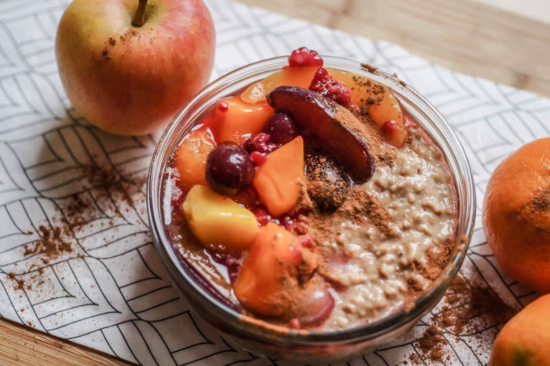 Und wenn man dann also ein warmes, leckeres Winterfrühstück haben mag, dann zaubert man sich mit diesem Oatmeal garantiert einen guten Start in den Tag. Nicht nur am Wochenende, sondern auch unter der Woche auf dem Weg in die Arbeit oder die Uni, ist so ein Frühstück eine gute Stärkung. Doch genug vorgeschwärmt, jetzt bekommt ihr das Rezept für dieses leckere Zimt Oatmeal mit Mango. Guten Appetit!