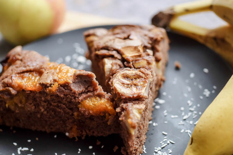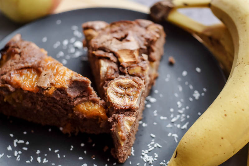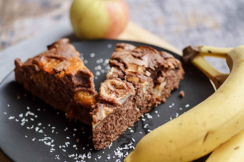 Durch die Banane erinnert es bei manchen Stücken leicht an Bananenbrot, die Mandarinen machen den Kuchen hingegen sehr saftig. Wie ihr seht, zeigt sich der Mix sehr vielfältig und lässt den Kuchen mit jedem Stück anders schmecken. Das Grundrezept ist immer ein Schokokuchen und ihr könnt beliebig euer Lieblingsobst ergänzen. Mit welchen Obstsorten könntet ihr euch den Kuchen denn ansonsten gut vorstellen? Vielleicht mit Mango? Oder Kirschen? Schreibt es mir gerne in die Kommentare. Nun wünsche ich euch viel Spaß mit diesem saftigen Schokokuchen! :)