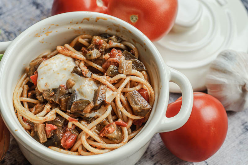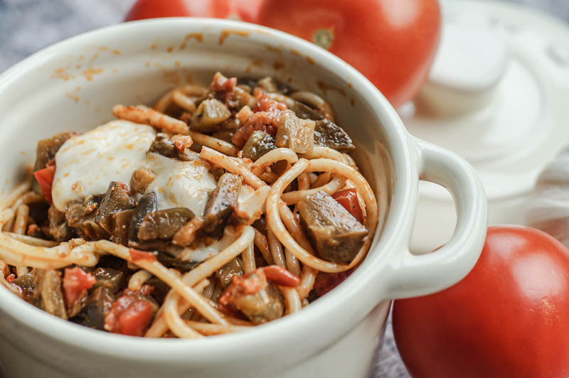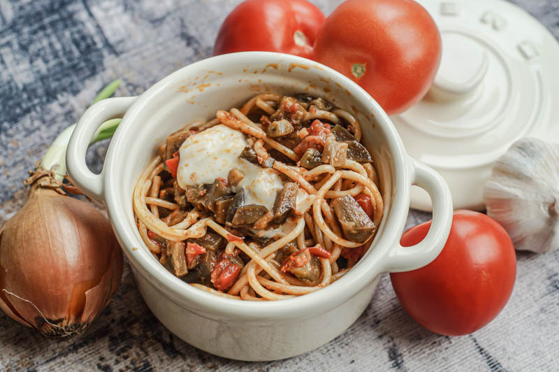 Natürlich ist es, wie die meisten meiner Rezepte, sehr leicht und auch schnell zu kochen. Den man kann sich auch mit einfachen Zutaten im Alltag ein leckeres Abendessen zaubern, das einen in den Sommerurlaub oder in den eigenen Garten im Sommer versetzt. Gerade die angebratene Aubergine versprüht Antipasti-Flair und versetzt einen damit in den Süden. Dazu das rote Pesto und die frischen Spaghetti – es braucht tatsächlich nicht viel und schon fühlt man sich etwas mehr wie im Urlaub, aber eben daheim. So kann man sich den Alltag mit leckeren Rezepten verschönern. Und Pasta ist bekanntermaßen doch immer eine gute Idee! Habt ihr auch so ein Rezept, das euch von Sommer und Sonne träumen lässt? Wenn nicht, freue ich mich, wenn ihr mein heutiges Rezept ausprobiert. Ganz viel Spaß und guten Appetit! :)