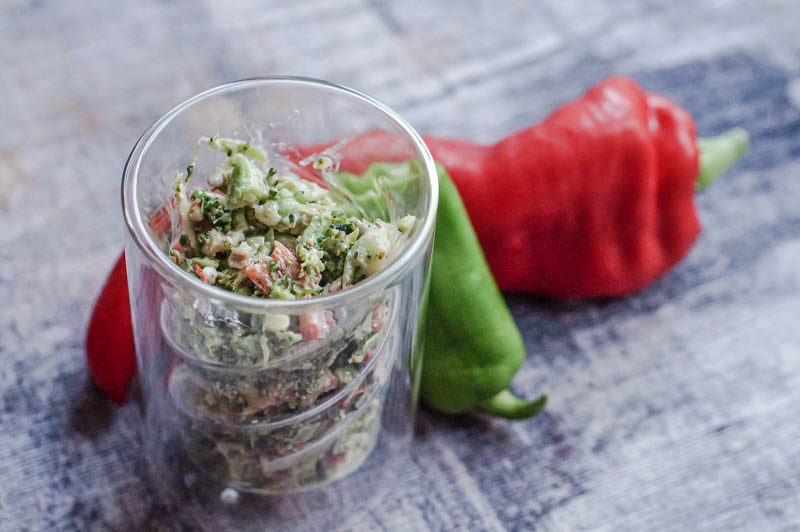 Doch sollte es ein besonderes Rezept sein, bei dem der frische Brokkoli aus dem Garten sozusagen die Hauptrolle und nicht nur die Nebenrolle in Form einer Beilage spielen sollte. Deswegen kam die Idee auf, diesen bunten Brokkolisalat auszuprobieren. Hierbei spielt Brokkoli nämlich definitiv die Hauptrolle und es ist mal ein ganz anderer Salat als der bekannte grüne Salat.