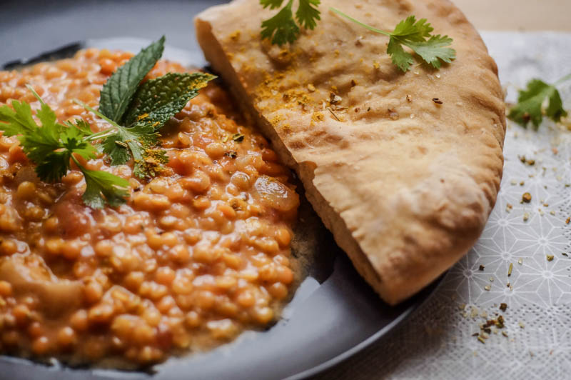 Denn für das heutige Rezept verwendet man rote Linsen, die zu einem Dal verarbeitet werden. Dazu gibt es frisches Fladenbrot aus dem Backofen. Natürlich alles selbst gemacht und frisch serviert! Doch auch am nächsten Tag schmeckt das Dal durchgezogen und das Fladenbrot aufgebacken natürlich sehr gut.